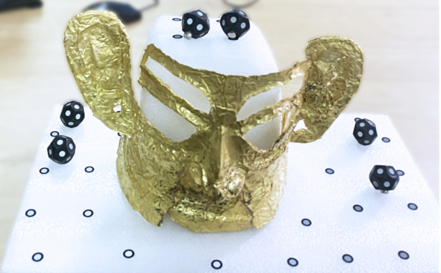 ▲3D打印器物塑膠外殼 圖源:四川省文物考古研究院 ▲金面罩 | 烈火熔金 神圣威嚴(yán)