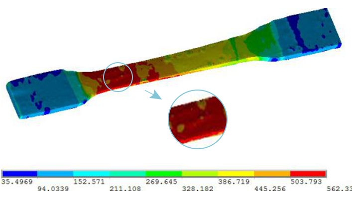 3、基于3D掃描技術(shù),實驗人員建立并驗證了有限元模型,得以對應(yīng)力分布和拉伸試樣的破壞狀態(tài)進(jìn)行研究和分析。