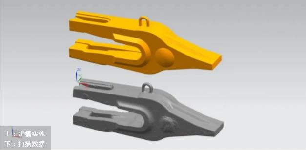 客戶主要經(jīng)營礦山機(jī)械的開發(fā)和生產(chǎn),現(xiàn)在需要對(duì)現(xiàn)有老舊礦山挖斗進(jìn)行更新優(yōu)化和創(chuàng)新。礦山挖斗本身較大,長(zhǎng)度約3米,主要掃描區(qū)域?yàn)橥诙非把b配挖齒的部分,最后將挖斗主體與配件挖齒裝配,進(jìn)行開模加工。