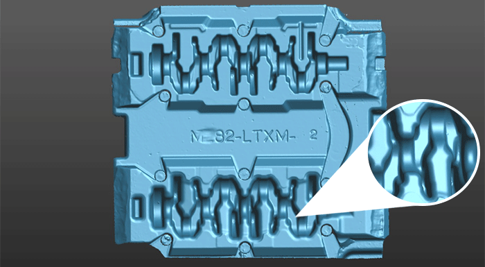 曲軸模具因其異型、型腔窄且深,對傳統(tǒng)檢測手段而言一直都是難點。即便是采用某些三維掃描儀,也會出現掃描數據缺面,部分死角掃描不到的情況。