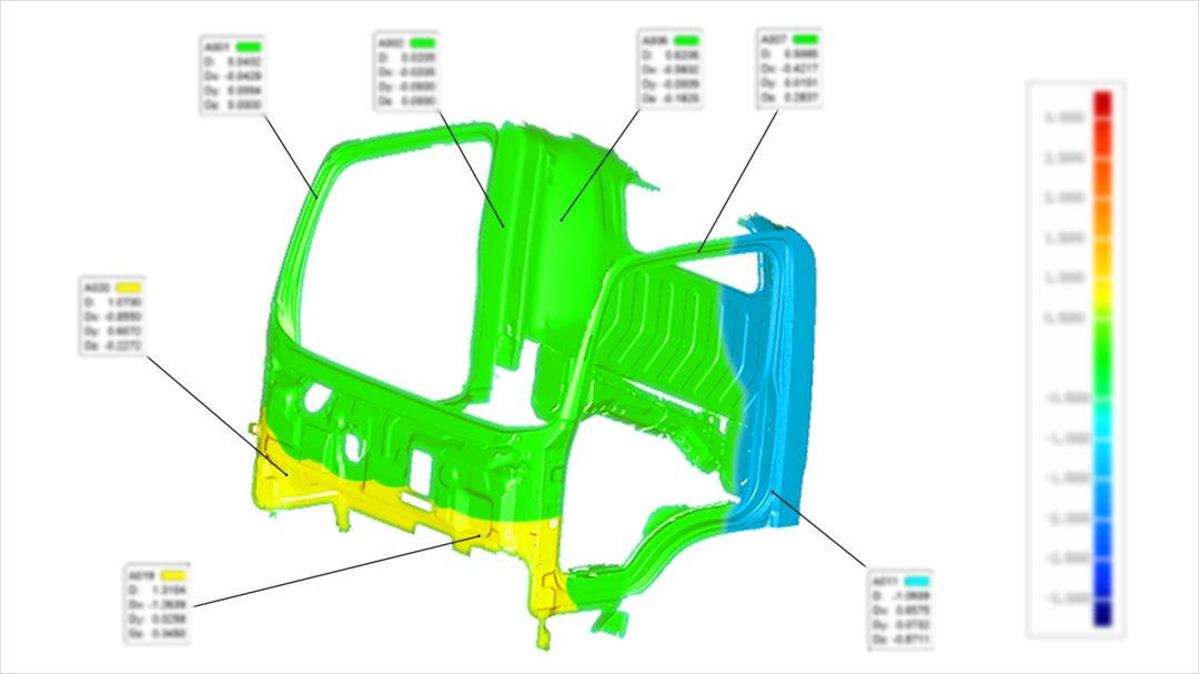 工業(yè)級光學(xué)跟蹤3D掃描系統(tǒng)HyperScan717+Geomagic專業(yè)檢測軟件的組合,能夠輕松解決白車身的檢測需求, HyperScan 717可以高效地進行數(shù)據(jù)采集,Geomagic則快速地完成檢測分析。